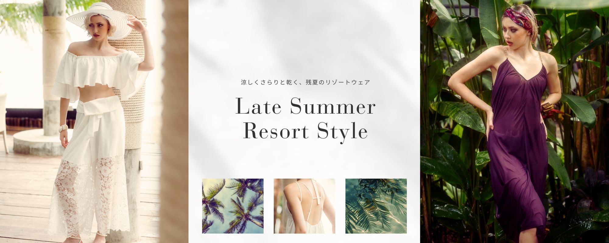 8月後半から9月も、日中は夏の名残を感じる暑さ。 そんな時季に頼れるのが、涼しくさらりと乾くリゾートウェア。 軽やかな着心地と洗練されたデザインで 街歩きからレジャー、旅行まで幅広く活躍します。
