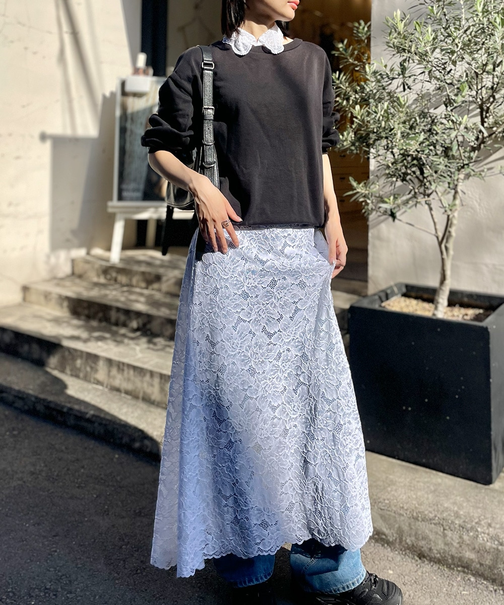 Playful レースコンビロングドレス